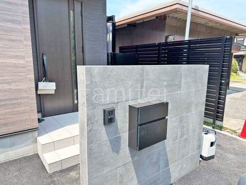 モダン門柱 壁タイル貼り タカショー セラレバンテ 郵便受けポスト YKKAP エクステリアポストT10型