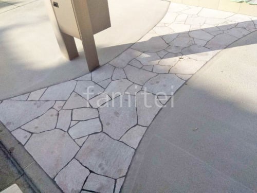 玄関アプローチ 床石貼り 乱形石 石英岩