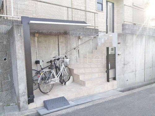 玄関アプローチ階段 床タイル貼り 施主支給