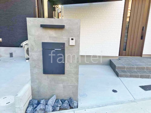 モダン門柱 壁タイル貼り タカショー セラレバンテ 宅配ボックス ユニソン ヴィコDB100 ロックガーデン ワズロック アオバ