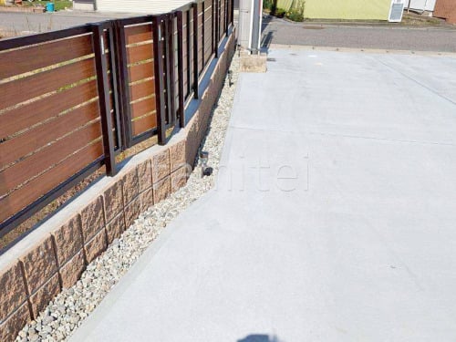 ブロック塀 (化粧ブロック) マツオコーポレーション リブ スタンダード 1L アルミ形材 フェンス YKKAP 木製調 ルシアスYS2H型 横スリット 目隠し 木調・ラティス
