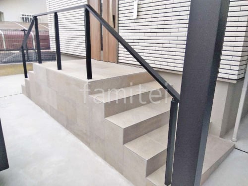 玄関アプローチ階段 床タイル貼り 施主支給 手すり LIXIL アーキレール