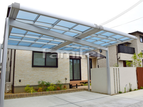 施工例:カーポート 三協Uスタイル 梁置きタイプ 片寄せ納まり 横2台
