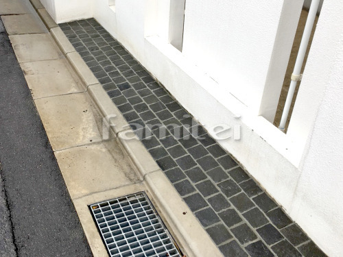 施工例:犬走り 土間コンクリート 道路沿い ピンコロ石貼り
