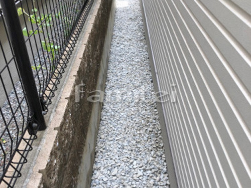 犬走り 防犯砂利敷き バラス砕石 防草シート加工