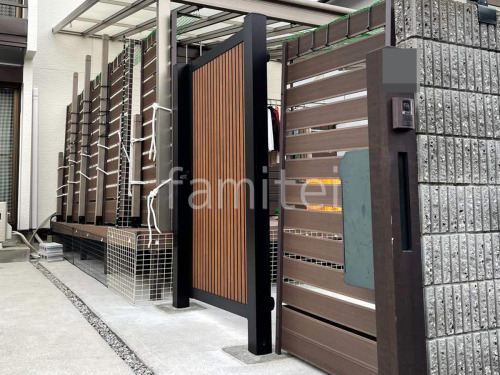 片開き 門扉 YKKAP 木製調 ルシアスTM1型 たて目隠し