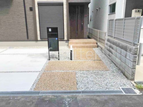 機能門柱 三協アルミ フレムスLight P型 玄関アプローチ 床洗い出し仕上げ ジャミ