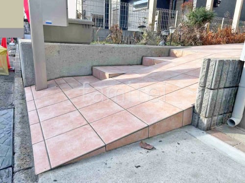 玄関アプローチ階段 床タイル貼り LIXIL パセオ