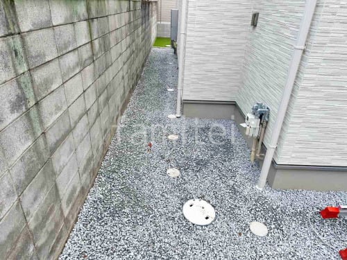 犬走り 防犯砂利敷き バラス砕石 防草シート加工