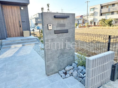 モダン門柱 壁タイル貼り タカショー セラレバンテ 郵便受けポスト YKKAP エクステリアポストG3型 ロックガーデン ユニソン ワズロック アオバ