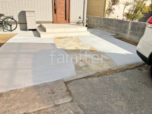 玄関アプローチ 床石貼り 乱形石 石英岩