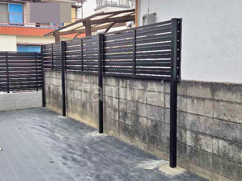アルミ形材 フェンス LIXIL AB YS3型 横スリット3 2段柱 60角 上段のみ 目隠し