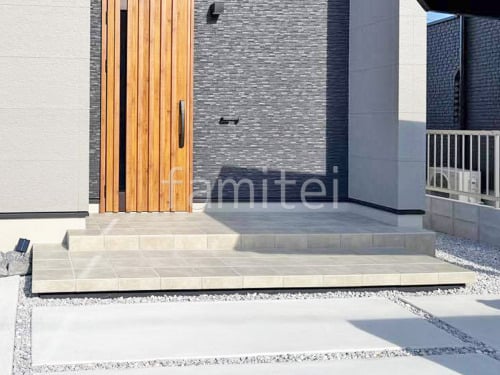 玄関アプローチ 浮遊階段(蹴込み階段) 床タイル張り LIXIL パセオ