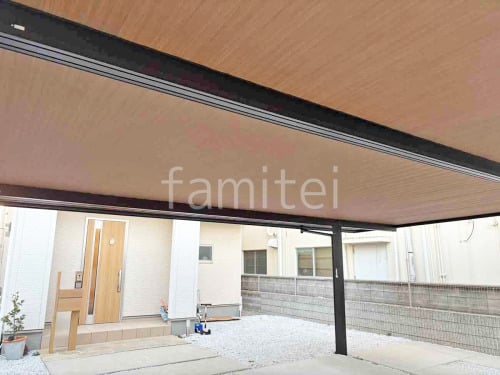 カーポート2台(ワイド) ツイン YKKAP 木製調 ジーポートPro 積雪30cm対応 フラット屋根 折板屋根